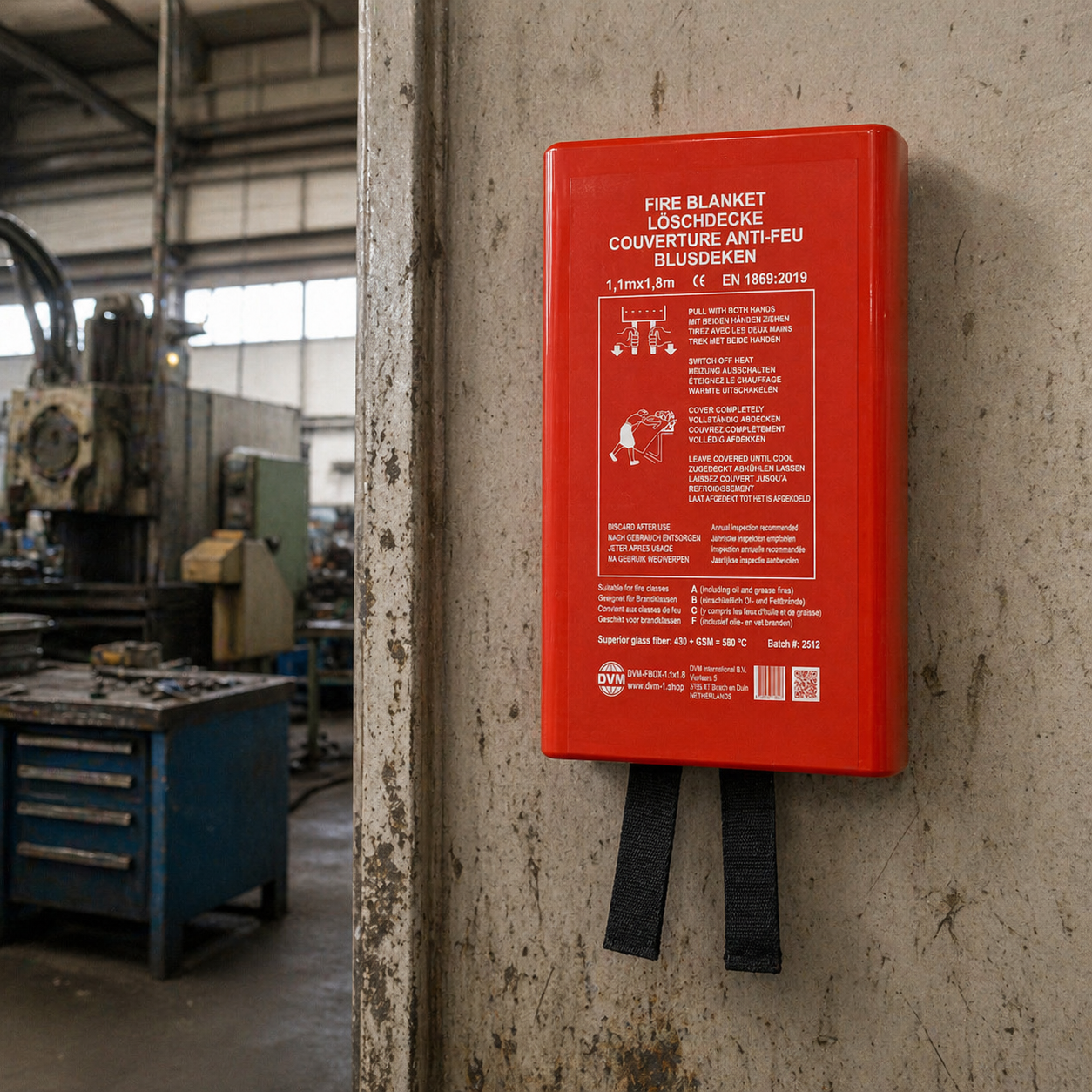 La couverture anti-feu DVM de 1,2 x 1,8 m en coffret Premium est conçue pour être la première intervention la plus sûre lorsqu'une couverture supplémentaire est nécessaire : pour protéger une personne, couvrir des ustensiles de cuisine plus grands ou éteindre des feux de surface plus étendus. Grâce à notre tissu en fibre de verre lourd de plus de 430 g/m², c'est l'une des rares couvertures anti-feu sur le marché européen véritablement adaptée aux feux de classe F (graisses et huiles) – là où de nombreuses couvertures plus légères offrent une protection insuffisante.